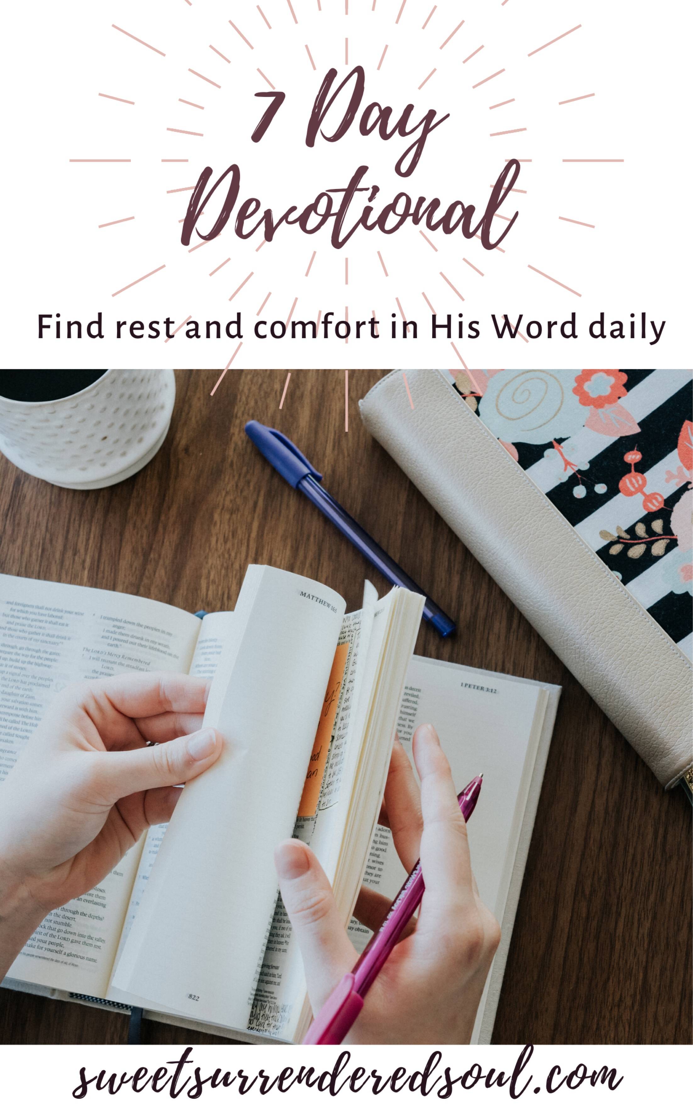 This devotional is meant to encourage you in your relationship with Jesus and help you to find rest and comfort in His Word daily.